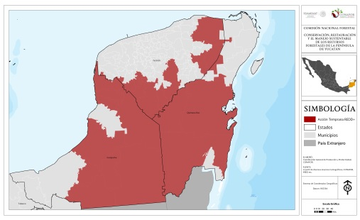 La siguiente figura muestra el Área de Acción Temprana REDD+ en la Península de Yucatán:
