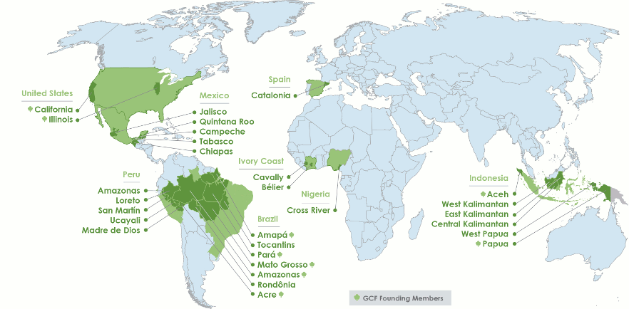 El GCF es una alianza subnacional única, formada por 26 estados y provincias de Brasil, Indonesia, México, Nigeria, Perú, España y Estados Unidos, que han colaborado, desde finales de 2008, en desarrollar los elementos centrales y las capacidades necesarias para crear programas jurisdiccionales REDD+ y el desarrollo bajo en emisiones, vincular estos programas con los nuevos regímenes de cumplimiento sobre los gases de efecto invernadero (GEI) y otras oportunidades de pago por rendimiento, integrarlos en agendas más amplias de desarrollo rural bajo en emisiones y fomentar el alineamiento con los procesos políticos nacionales e internacionales.